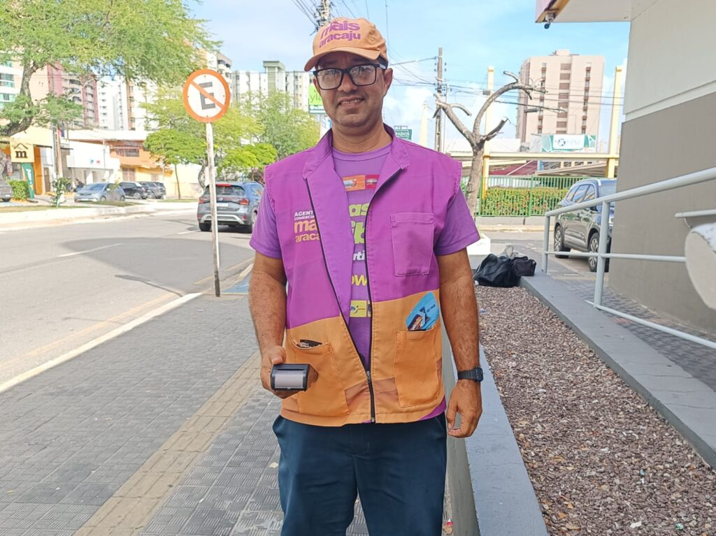 Das 8h às 16h, Ricardo comercializa créditos do Mais Aracaju em frente ao Gbarbosa da avenida Francisco Porto
